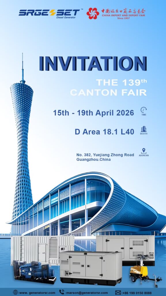 SR Power (Shengrong Power), a leading OEM manufacturer of diesel engines and diesel generator sets, will participate in the 139th China Import and Export Fair (Canton Fair) , taking place from April 15 to 19, 2026 in Guangzhou, China. We will present its high-performance diesel generator sets at Booth D Area 18.1 L40.